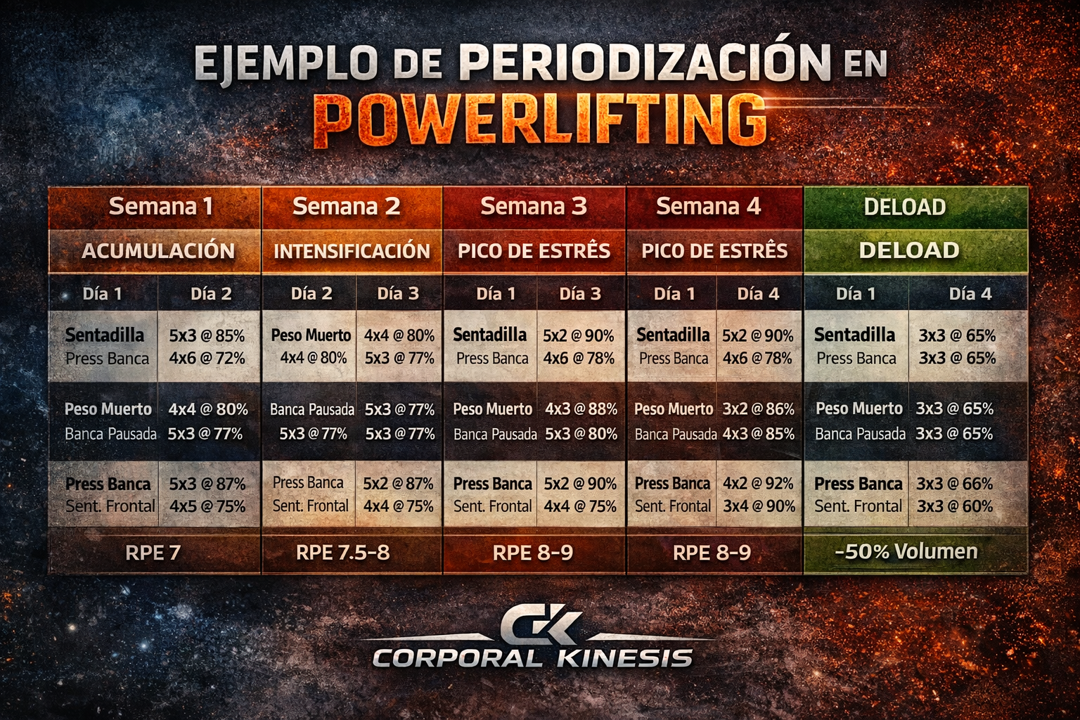 El powerlifting es un deporte de fuerza máxima donde el rendimiento depende de la capacidad de producir altos niveles de tensión muscular en patrones específicos: sentadilla, press de banca y peso muerto. A diferencia de otras disciplinas, el progreso no se explica únicamente por el incremento lineal de cargas, sino por la organización estratégica del estímulo a lo largo del tiempo. En este contexto, la periodización se define como la manipulación planificada del volumen, la intensidad y la especificidad con el objetivo de inducir adaptaciones fisiológicas progresivas y sostenibles (Bompa & Haff, 2009).